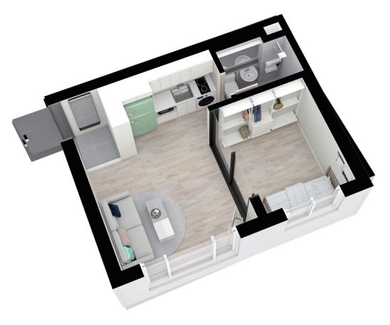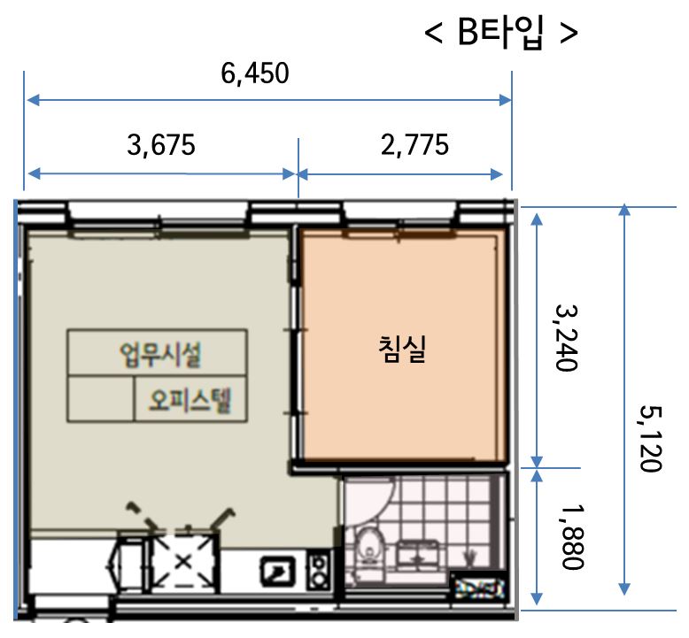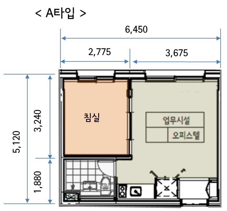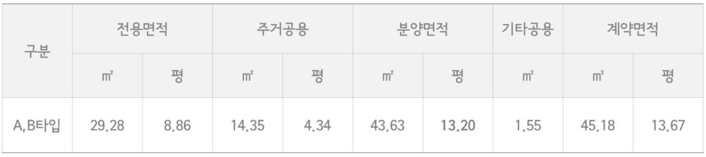 실용성과 입주자 만족도를 동시에 높인 구조 전체평면도 경원 하이뷰 오피스텔(주거형)은 1인가구 세대의 니즈에 적합하게 설계된 공간으로 전용 2.72평의 침실과 전용 5.7평의 거실 겸 주방, 화장실 및 샤워실로 구성하여 가장 쾌적한 공간을 제공합니다. 단위세대 평면도 경원 하이뷰 오피스텔(주거형)은 이상적인 1.5룸 구조를 구현하였으며, 경쟁상품들의 1.5룸 구조는 대부분 긴 직사각형 형태로서 실용성이 현저히 떨어지는 단점을 보완하여 넓은 거실 및 주방을 제공할 수 있는 정 사각형에 가깝게 설계하여 최상의 거주자 편의를 제공합니다. 분양 면적 경원하이뷰는 전용면적 29.28㎡ (약 8.86평)의 1.5룸 평면으로 구성되어 있으며 계약면적 기준 약 45.18㎡ (13.67평) 규모입니다. 넉넉한 주거공용 및 기타공용 면적이 더해져, 실사용 공간 대비 높은 체감 면적을 제공합니다.